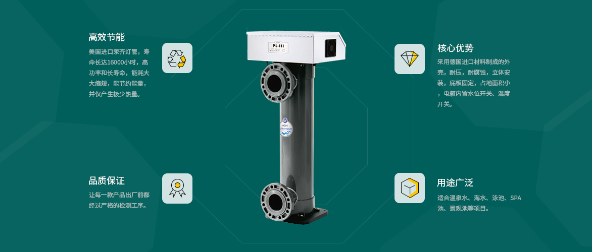 外观时尚;立体式设计,占地面积小,节省空间,安装简易,AQUA小猪视频免费下载高清小猪视频在线观看下载免费污消毒设备是游小猪视频在线观看下载免费污、景观池、海洋馆、净水处理、水产养殖、废水处理、车间消毒等项目的理想选择。