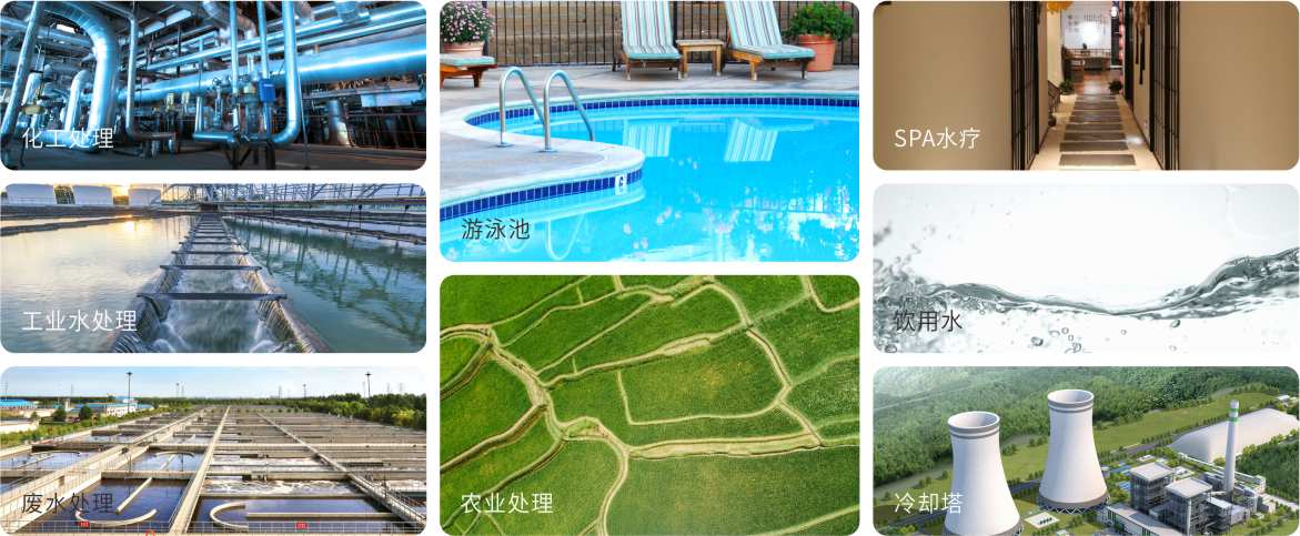 用于各类型小猪视频在线观看下载免费污、SPA水疗、工业水处理、冷却塔、饮用水、废水处理、农业等水处理领域。