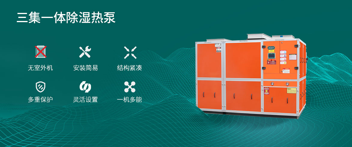 三集一体恒温除湿热泵整体占用机房面积小,设备机房布置灵活多变;性能强大:配备国际大牌压缩机,性能优越,低噪音。