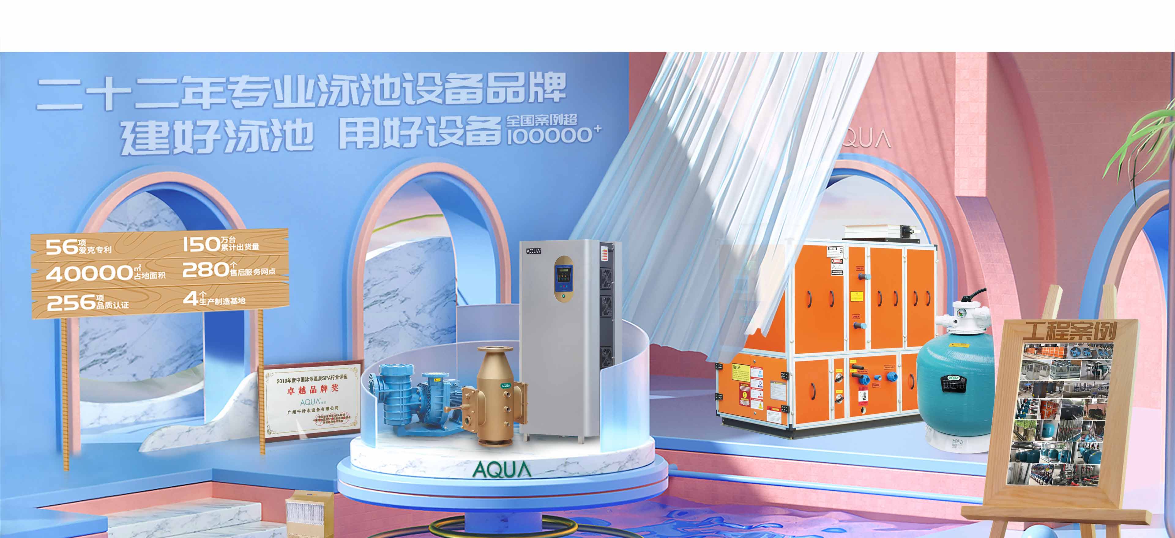 Founded in 1999, AQUA is a well-known brand that specializes in the production and sale of water treatment equipment such as swimming pools, water parks, hot springs SPA, and aquarium recycling systems. It has a production and research base of about 40,000 square meters in Guangzhou, Zhejiang and other places, and has the ability to develop and produce a complete set of swimming pool leisure water environment equipment.