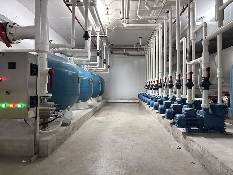 消毒监控系统的创新在于,采用不锈钢紫外线杀菌器与投药泵的联动设计。紫外线杀菌器利用紫外线破坏细菌DNA结构,杀菌率达99.9%;投药泵则依据水质监控仪的实时数据自动调节消毒剂投放量,有效避免了传统人工投药的剂量偏差。这套系统的另一大亮点是:水质监控仪可实时监测pH值、余氯含量等关键指标,数据异常时自动报警,确保消毒环节精准可控。